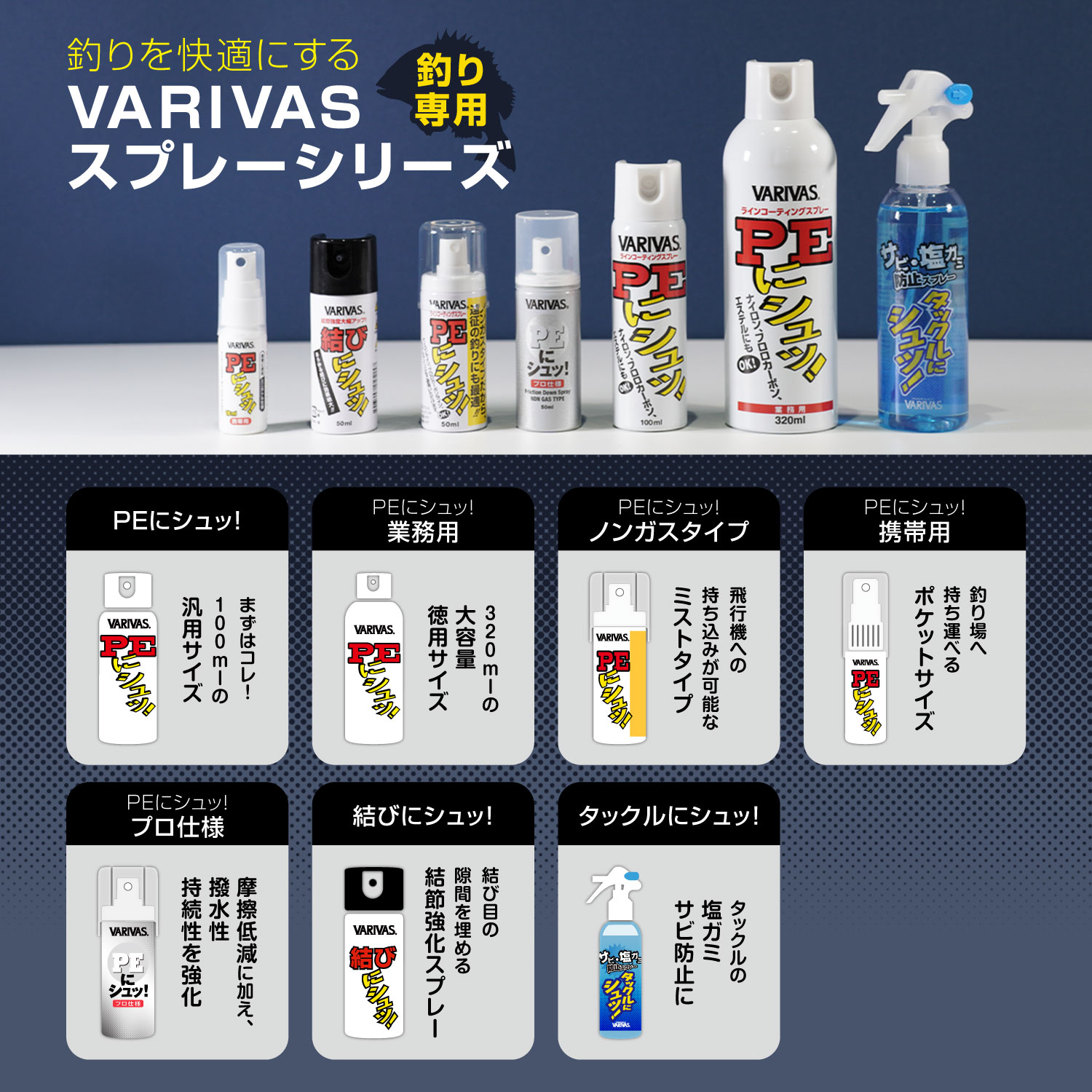 ライン表面に撥水性保護膜を形成するPEライン用メンテナンススプレー(ナイロン・フロロラインにも対応)。摩擦係数が激減し、スムーズなキャスティングと抜群の飛距離を実現します。ラインの劣化、ガイドの摩耗も防ぎます。
