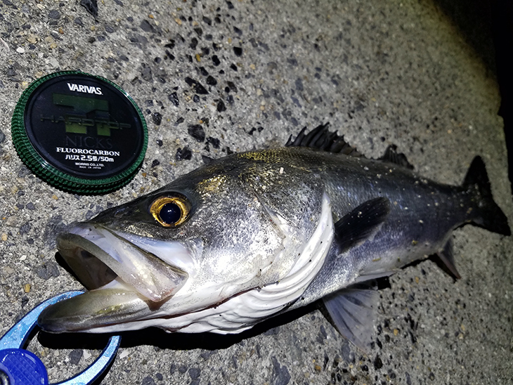 その後、少し間を開けてトレースコースを少し変えながらリトリーブすると同サイズのシーバスをキャッチすることができました。