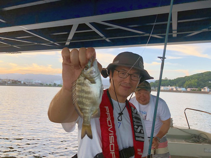 船長に無理を言って少し早めの出船。暗くなるまではチヌ釣りなんかをして楽しみました。