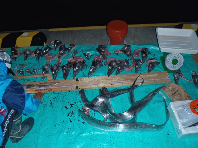 エサよりジギングの反応が良く、サンマは身崩れが早いのでサンマのエサをやめ別のエサに変更する事に?