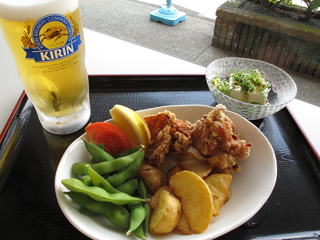 温泉でゆっくり汗を流した後は、おつまみセットを頂き、クーラーの効いた2Fの大きな休憩所でゆっくり仮眠。