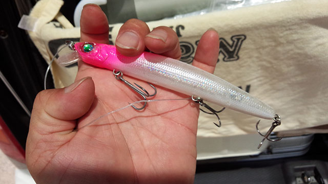 リアフックが口に掛かり、センターフックが側面を拾っていたので水の抵抗だけが倍増。