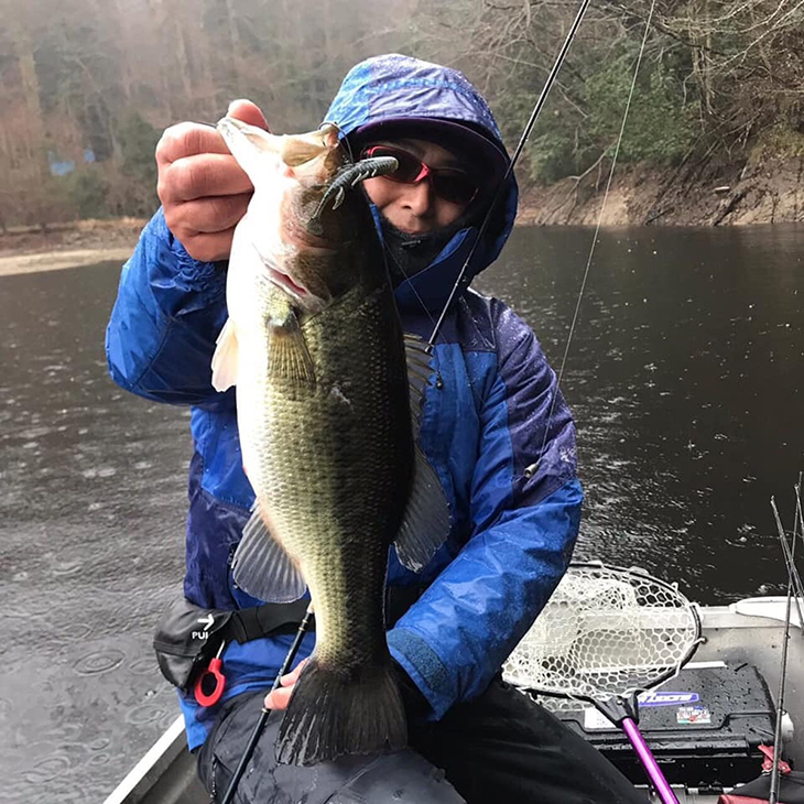 また、リアクションに反応が悪い場合は、アバカスシャッド 3.3inchのテキサスリグで底をゆっくりズル引きしているとバイトに繋がりました。