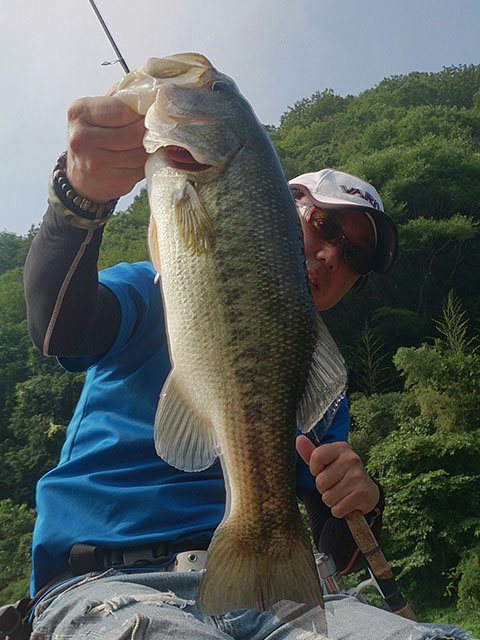 そして年間4位で迎えた第4戦。7月末ということもあり気温36℃と焼けるような暑さでした。こうなると旭川ダムは最上流域が定番エリアとなってきます。プラクティスでは50クラスのキッカーフィッシュの手応えも!