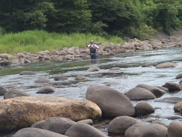 二日目は子吉川、大石がゴロゴロ点在する川でここも渇水だった。