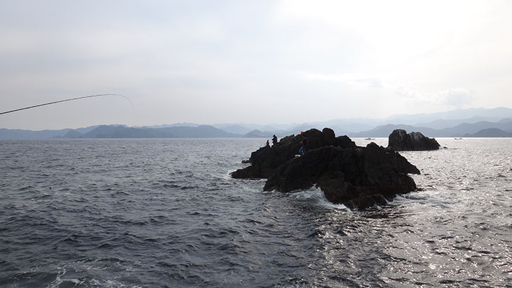 三重県紀東の各磯では水温の上昇と共に厄介なエサ取りのサバが回遊しだし、サシエがほとんど残らない状況とのこと。しかし紀伊長島磯にはサバが回ってきていないらしく、釣友の北崎氏と13時30分出船の半夜釣りに出掛けた。紀東磯での半夜釣りでは一番出船時間が遅いエリアで睡眠も充分とれるため身体も楽で釣りに集中できる。道中、大紀町崎のつりエサ市場本店でエサ等を購入し、北牟婁郡紀伊長島町の一栄渡船を訪れた。13時30分出船。大島方面に向かう。大島の一番から順番に磯付けし、「4番に二人組行って」とのことで私達が渡礁。納竿時間が18時30分、実釣時間は4時間程のため、急いで準備に取り掛かる。14時過ぎ釣り開始。北崎氏は先端に私は3番との水道側に釣座をとった。