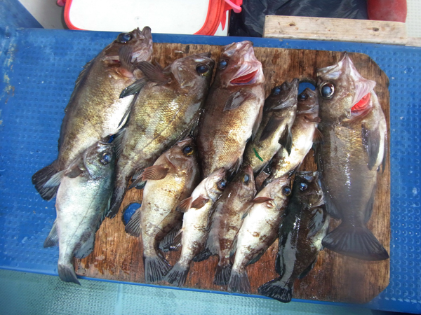 次の流しで隣の人に23cmくらいのがダブル。ボクも追い喰いを狙うが残念ながら1匹だけ。船が4~5回潮上りをして「ちょっとアカンなぁ、メバルが凹み出した~~ぁ」と船長がマイクでつぶやく。ボクはこの時点で23~29cmのを5匹。いいサイズばかりなのでほぼ満足。