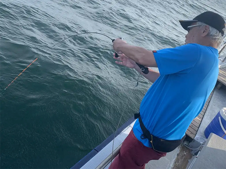 7月30日。この日も兵庫県垂水の虎ノ介の午後便でタイラバ。席は左舷胴の間。この日の船長の狙いはシャロー攻め。ただ、夕方くらいから南風が強く吹く予報なので勝負は早めに。