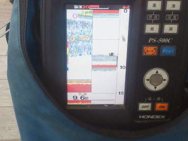 魚探を入れてみると、底付近にチョロチョロとした反応があり
