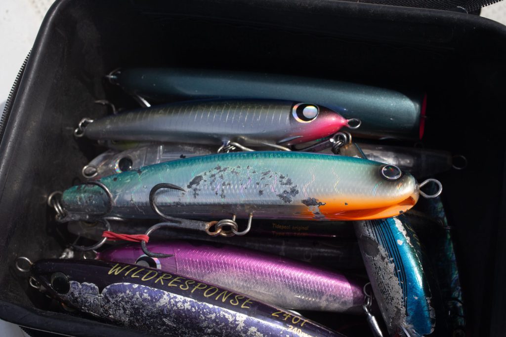 中村さんはコンタクト フィードポッパー175、150、オシア バブルディップ180Fフラッシュブースト、オシア ヘッドディップ140Fなどを使用。