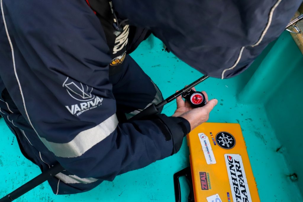 ▲対マグロ類のファイトは走らせることが前提ゆえ、北村は必ずドラグチェッカーを使って強すぎず弱すぎないドラグ値に正確にセットする。