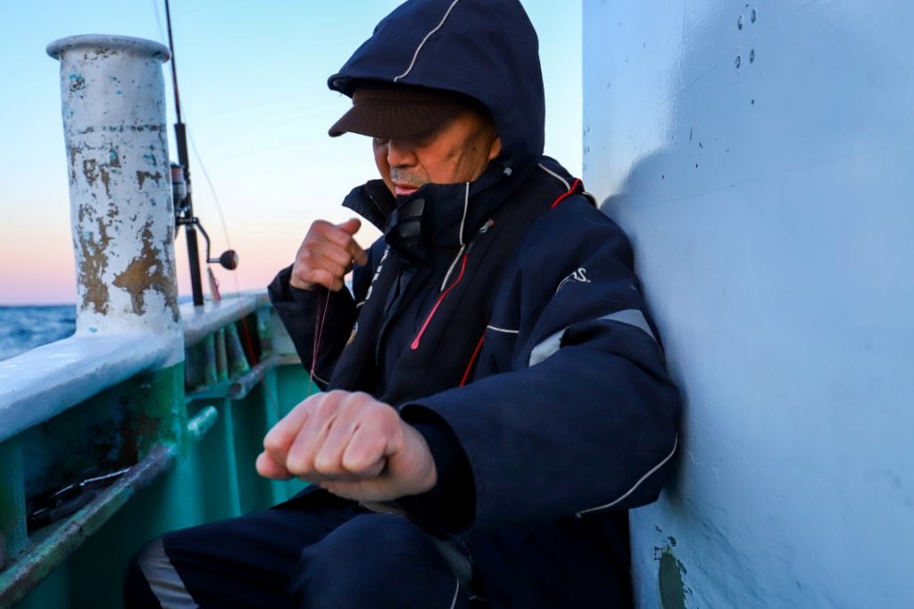 この釣りは、ずーっと辛抱して、ずーっとやらなきゃならない。船長がいい反応ありますよ、と言っても必ず食うわけではない。