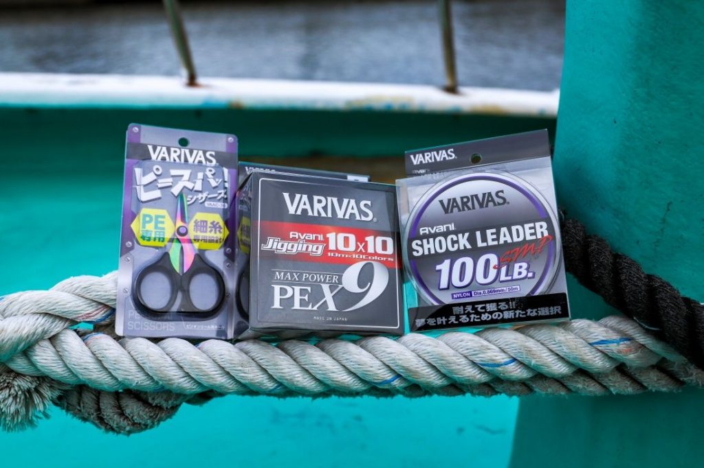 ▲PEラインは絶対的な信頼を置く、バリバス・アバニジギングマックスパワーX9。4号をメインで使用した。「このPEラインはとにかく水キレがいい。だからジグのフォールスピードも速いし、シャクっているときの情報量も多い。これは釣り人にとっては凄い有利だね」と北村。リーダーはナイロンのバリバス・ショックリーダーSMP100lb。「本当にBIG ONEを狙いたい、獲りたいんだったら、信用できる道具を選ばないとダメだね」。北村とバリバスとの付き合いは30年以上だ。
