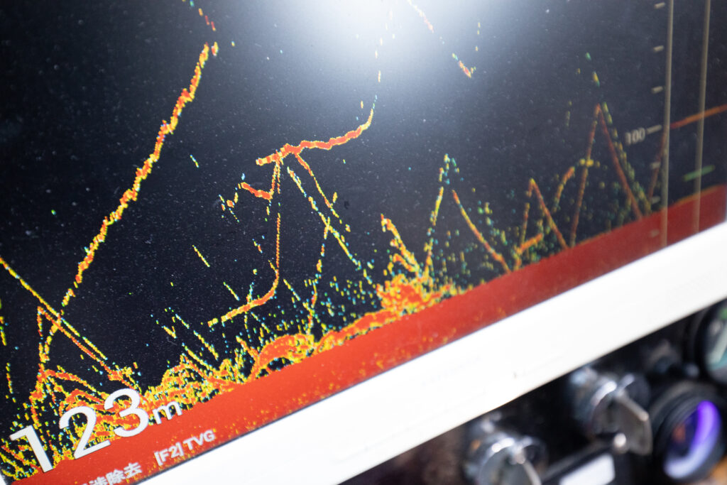丹後半島のブリジギングでは100mを超える深場を釣ることも多いので、縦の釣りをするうえで、どの層で潮が効いていて、どの層で潮がたるんでいるかを感じ取ることがものすごく重要だと考えています。