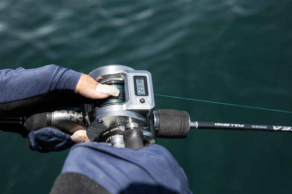 底から5mとか、もっと言えば底から3m以内を狙うときに、スピニングよりも細かくジグを当てていける、っていうのもベイトタックルの大きなメリットだと思います。