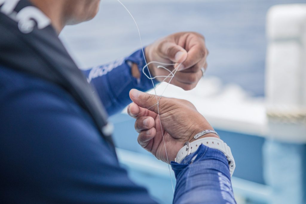 池上さんはPEラインとショックリーダーのラインシステムはFGノット、スナップとの結節にはハングマンズノットで行っている。必要十分な強度を確保したうえで利便性、スピードを求めた結果だ。