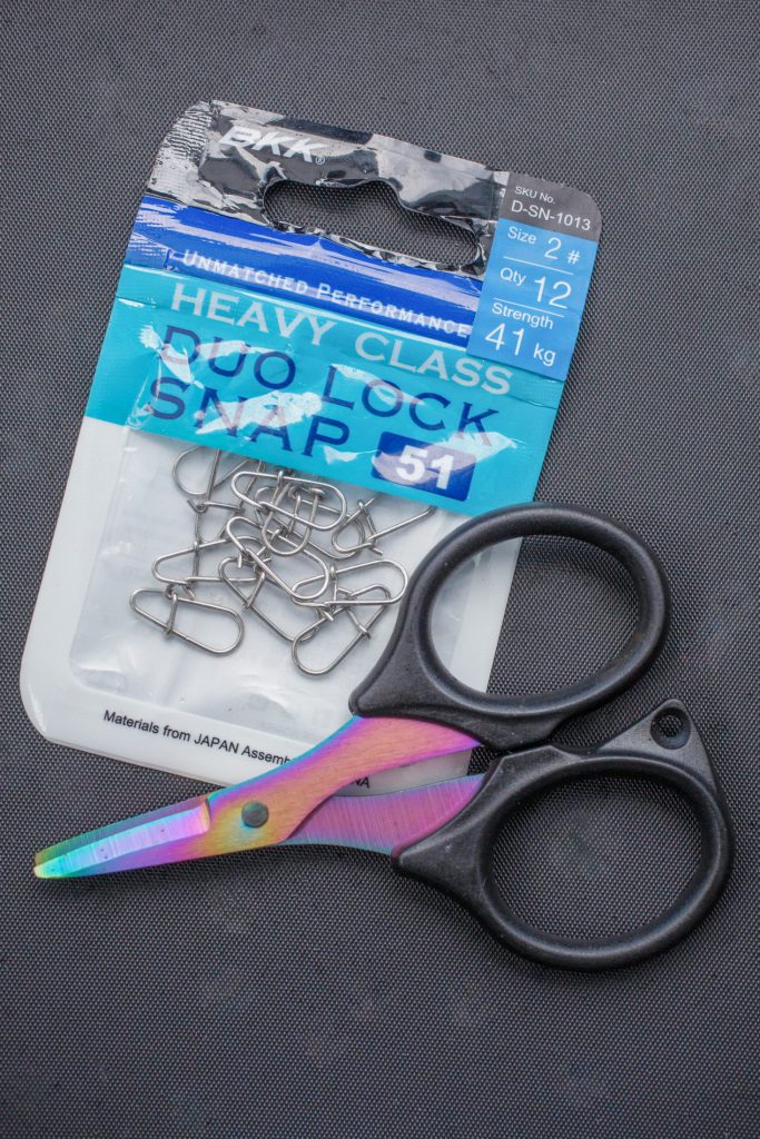 ルアーとの接続はルアー交換の利便性を考慮しスナップを使用。ただし、強度不足はいただけない。製品のセレクトは慎重に。池上さんおすすめはネイチャーボーイズの「鉄腕スナップ」、BKKの「デュオロックスナップ」など。