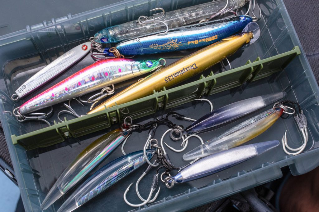 池上さんが用意していたのは飛距離が出ることを第一条件に、シンキングペンシル、メタルジグを基本にしたルアーたち。キハダ用は「プラウラー190」(ジャクソン)と「ガチペン190」(ブルーブルー)の2つを愛用。