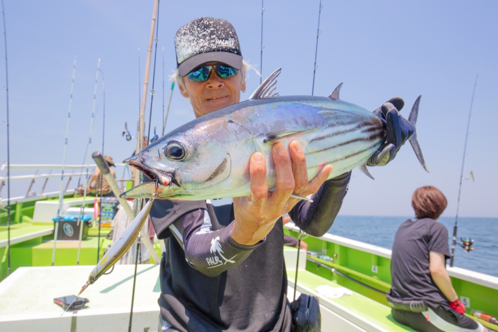 シイラキャスティングでのゲストはカツオとキメジがメインです。これらはトリヤマやナブラ狙いで釣ることが多いですね。