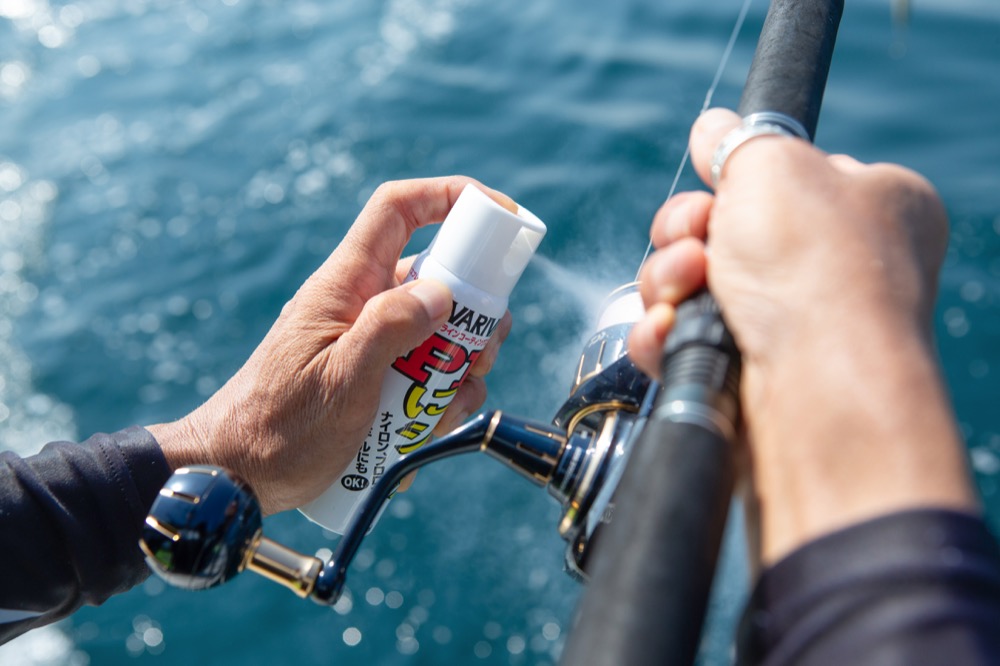 リーダーを引っ張ってメインラインを触ったときにザラつき感があったり、滑らかさがなくなっていると感じたときは、まずPEにシュッ!』を吹いて滑らかさを補給してあげます。