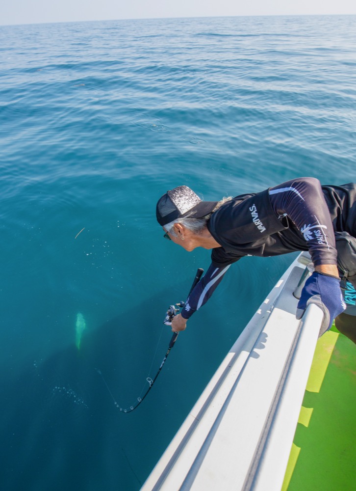 自分が狙っていた魚だけど掛けられなかった、というシイラが後ろの方に泳いで行ったら、『その辺にいるよ!』と知らせたりもします。船上でワンチームみたいな雰囲気が、すごく楽しいなと思っています。