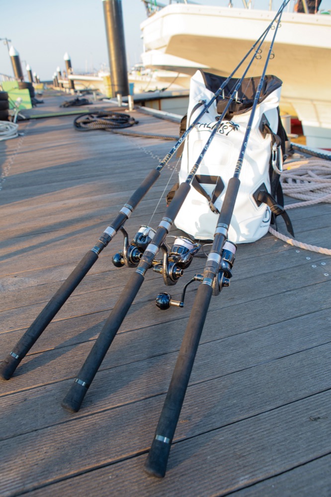 ▲タックルは予備の意味も含めて2セットは必要、と石井さん。ルアーが合っていない、と判断すればすぐさまタックルを持ち替えて対応する。
