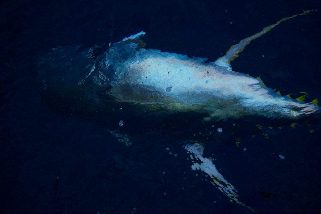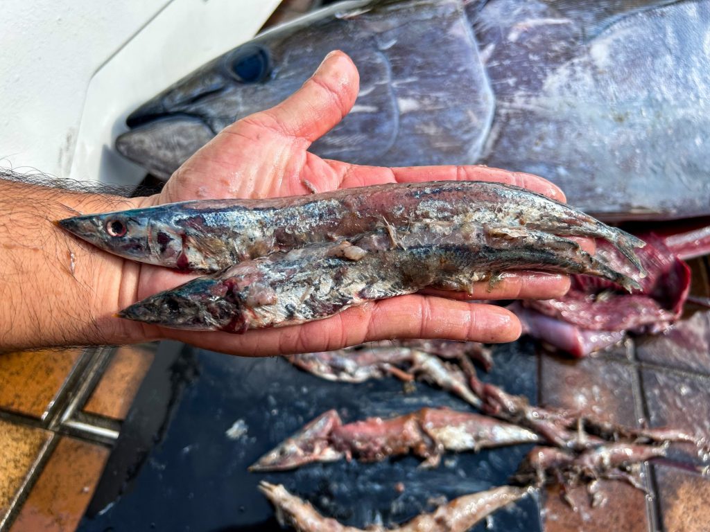 椙尾さんがキャッチした50kgオーバーのキハダの胃からは、20cm以上あるサンマが何尾も出てきた。