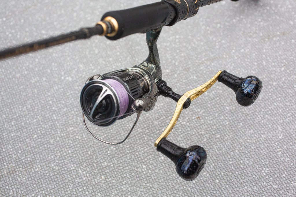 ティップラン用スピニングリールとしては、従来はノーマルギアを推奨していましたが、近年はハンドルでトルクアップできるので積極的にXGを使っています。