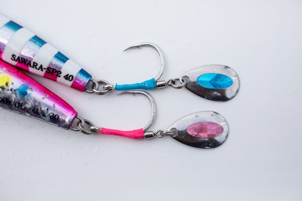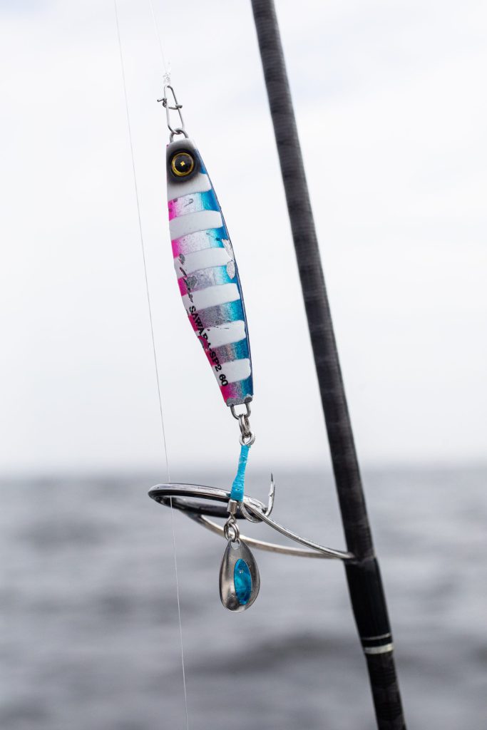 サワラ狙いのブレードジギングでは朝マヅメ、夕マヅメは大きなチャンスタイムになることが多いのですが、そういった薄暗い時間帯でもホワイトカラーなのでルアーのトレースコースがはっきりと見えます。