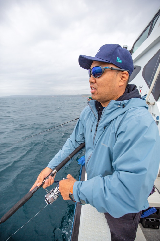 外房ではアンダーハンドキャストが求められる。船の四隅ではオーバーヘッドキャスト、サイドハンドキャストが可能なときもあるが、基本的にはアンダーハンドキャストがレギュレーションと考えてよい。アンダーならではの注意点もある、とは椙尾さんだ。
