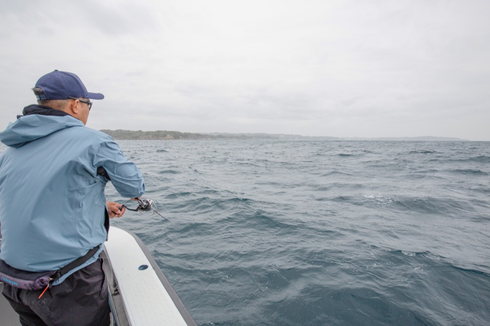 しかし、取材日は海が大きく変わっていた。水深60mのポイントで150gのジグを使っても何回もボトムタッチが出来た。それほど潮の流れは緩くなっていた。船中ノーヒット。沈黙の時間が流れ続けた。