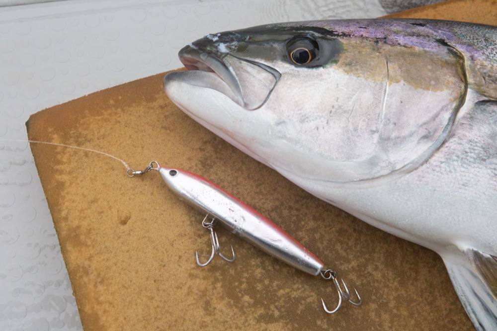 ▲取材日、椙尾さんが2匹のヒラマサを仕留めたのはいずれもプロトモデルのシンキングペンシル。製品化は?気になるところだ。