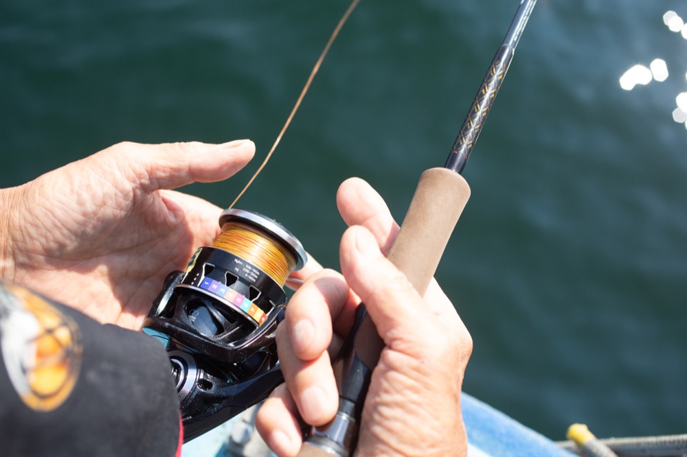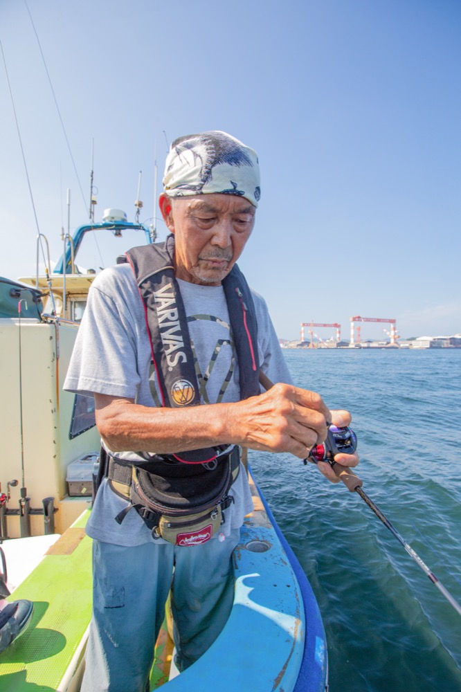 ▲「潮負けするようなラインはダメだ」と北村さん。素早くジグをフォールさせ、タチウオのレンジにジグを送り届けることができるか否かはラインの性能による部分も大きい。