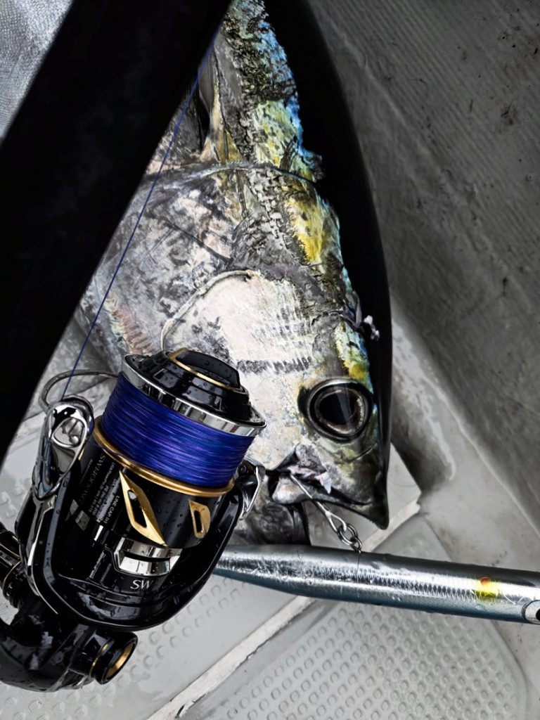 今回はX9の6号に、SMPの140LBを結んだ。このPEとリーダーの号数は、私がいつも土佐湾のキハダキャスティングで主力としている組み合わせだ。