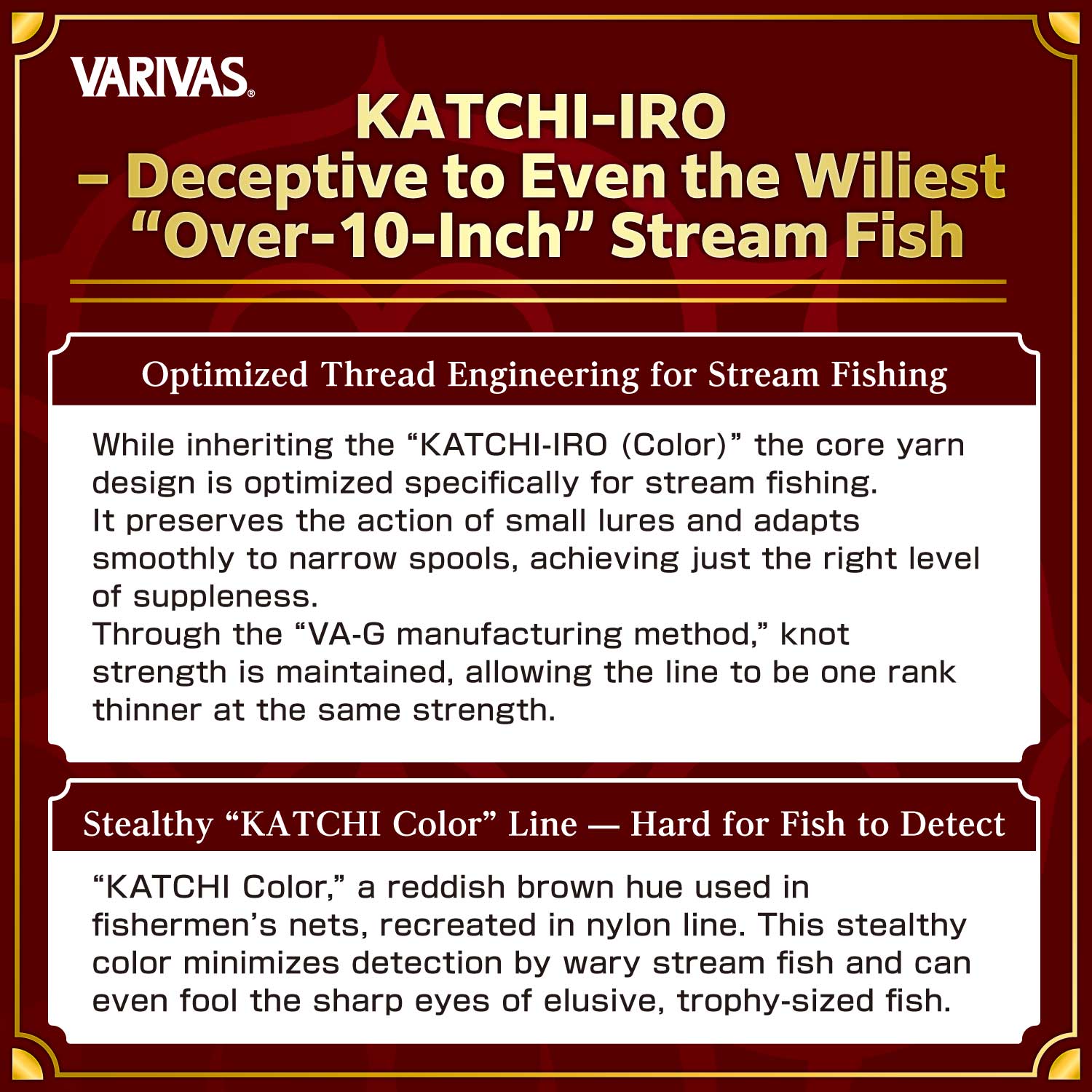While inheriting the “KATCHI-IRO (Color)” the core yarn design is optimized specifically for stream fishing.