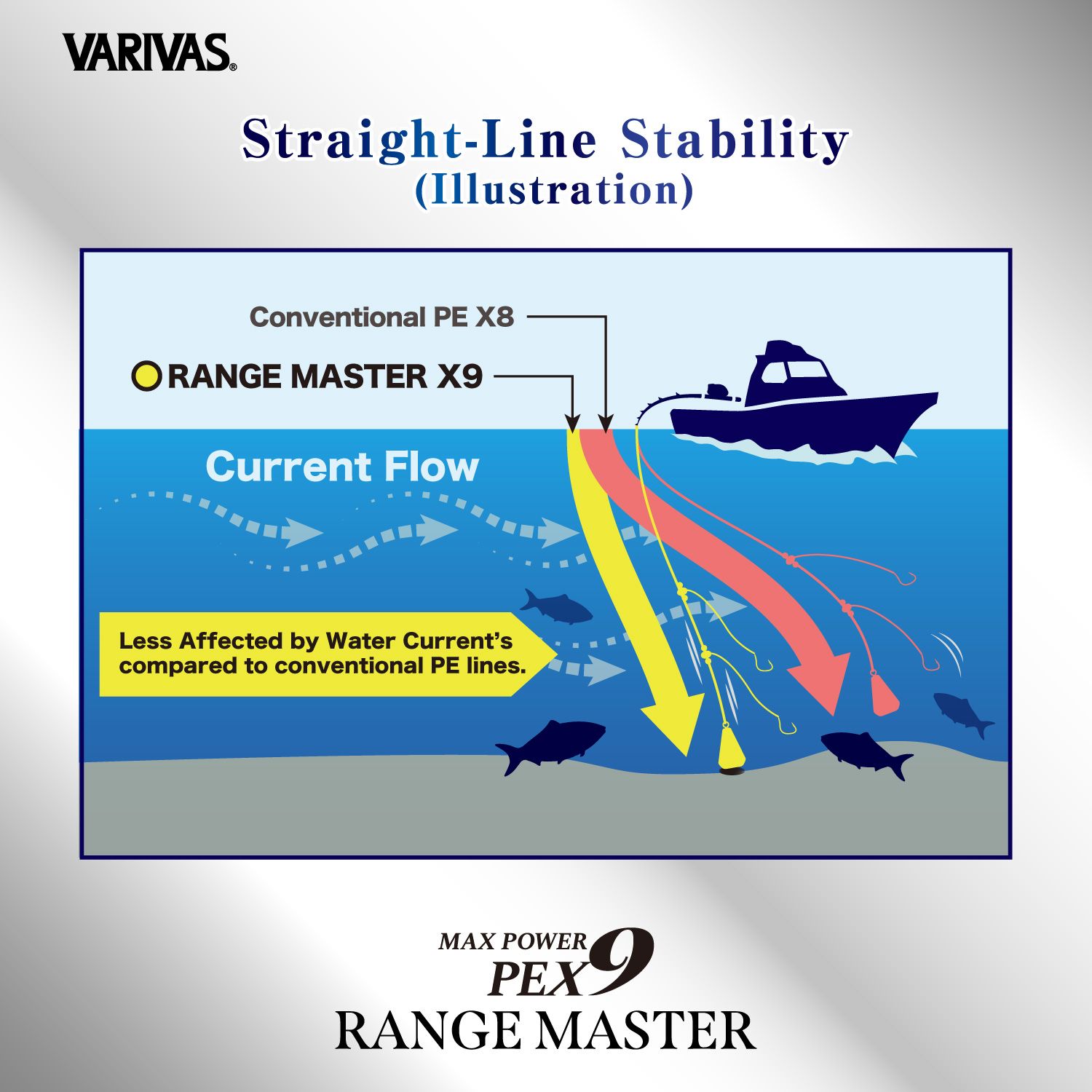 Improved straight-line stability reduces the effect of current compared to conventional PE lines, allowing the line to sink quickly and accurately to the target depth. This precise fall performance gives anglers a clear advantage when presentation timing matters.
