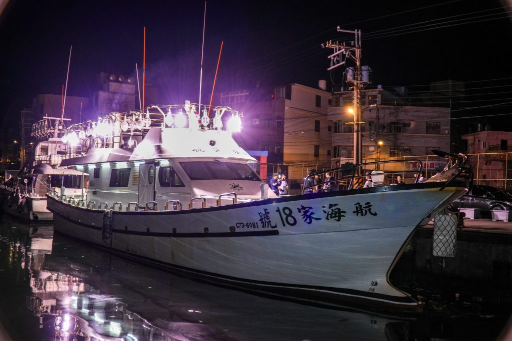 一日目。午前3時。周囲は真っ暗だ。遠くにはあの有名な九份エリアだという街の灯りが見える。田代船長を乗せた航海家18号船は、台湾最北端に近い深澳漁港を出船した。