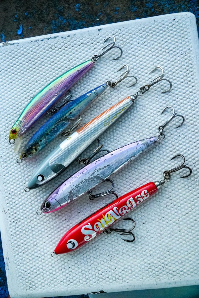 田代誠一郎船長「ルアーは、ポッパーから、大きいペンシル、シンキングなど、どのような状況になっても対応できるように色々なものを持ってきました。