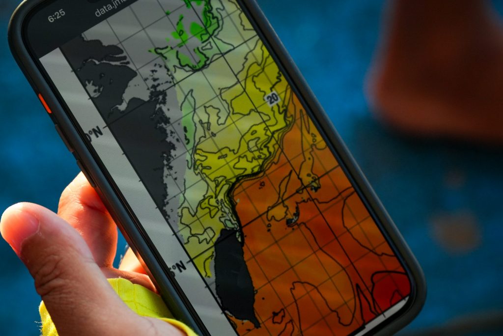 船は78フィート、49トンという超大型船。広いキャビンの奥にはベッドもあり、エアコンはもちろん、大型モニターもある。そこには魚探やGPSの映像が常時映し出されている。そして、船内ではなんとWi-Fiまで繋がるという。